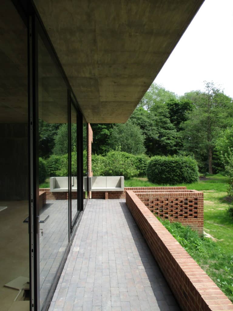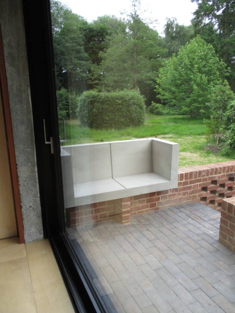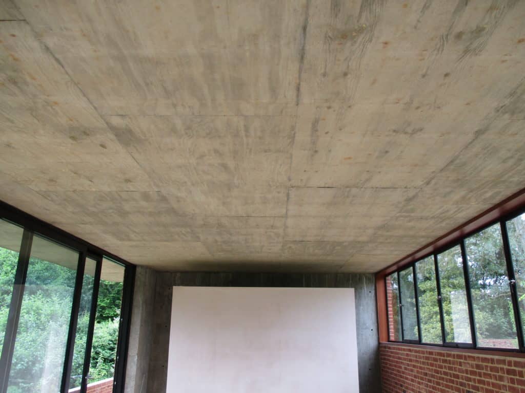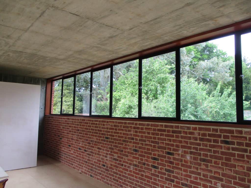 This project followed on from refurbishment and alteration works to existing house on the site. Formwork was erected for the cast in-situ concrete frame and clear span roof. Large three section feature sliding doors to one elevation of the main studio space, high level ribbon windows to the walled garden elevation.